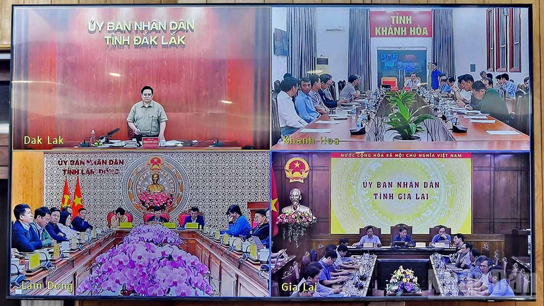 Thủ tướng Chính phủ Phạm Minh Chính họp trực tuyến với các tỉnh Khánh Hòa, Gia Lai và Lâm Đồng về tình hình khắc phục thiên tai.