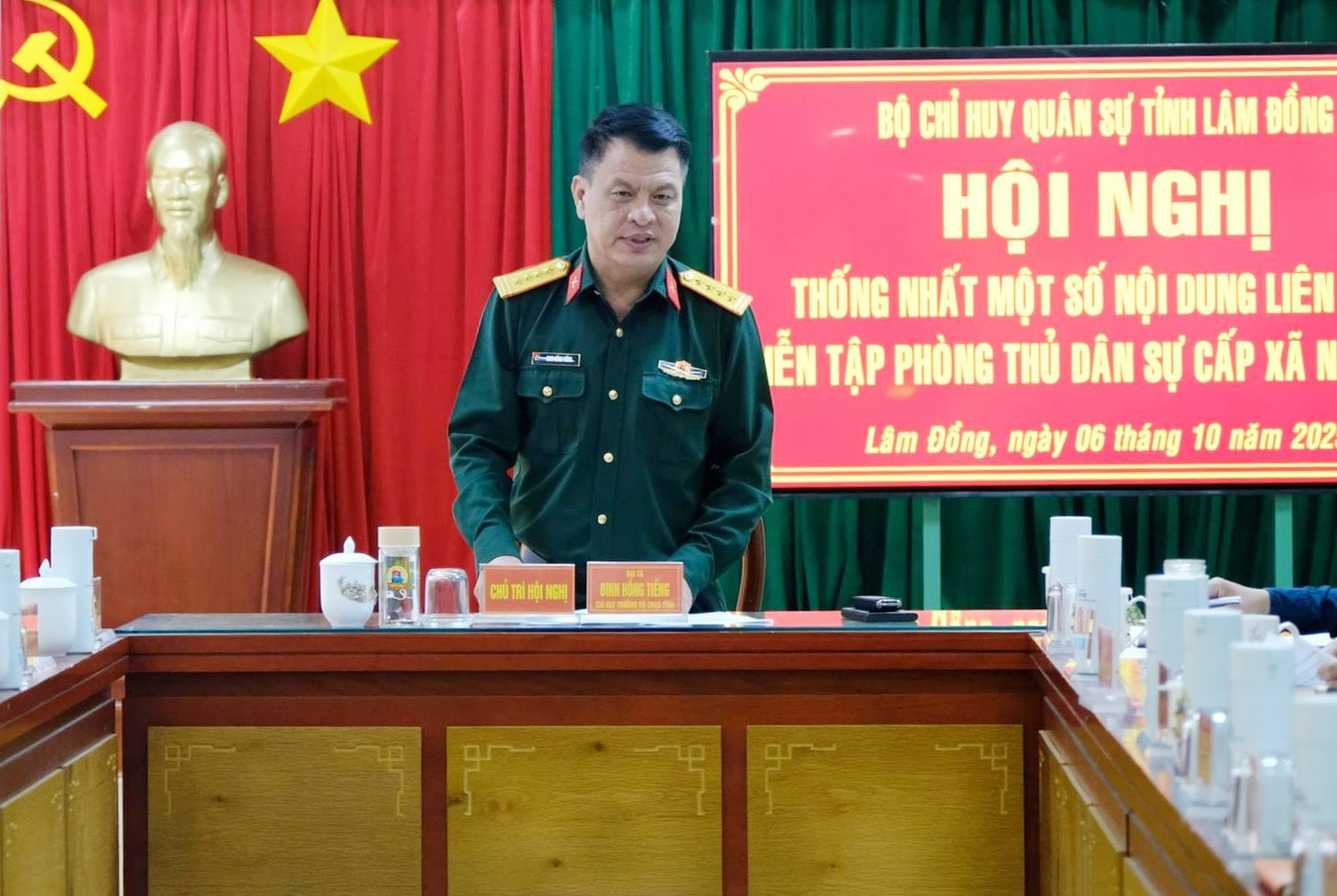 Đại tá Đinh Hồng Tiếng, Ủy viên Ban Thường vụ Tỉnh ủy, Chỉ huy trưởng Bộ CHQS tỉnh chủ trì buổi làm việc.