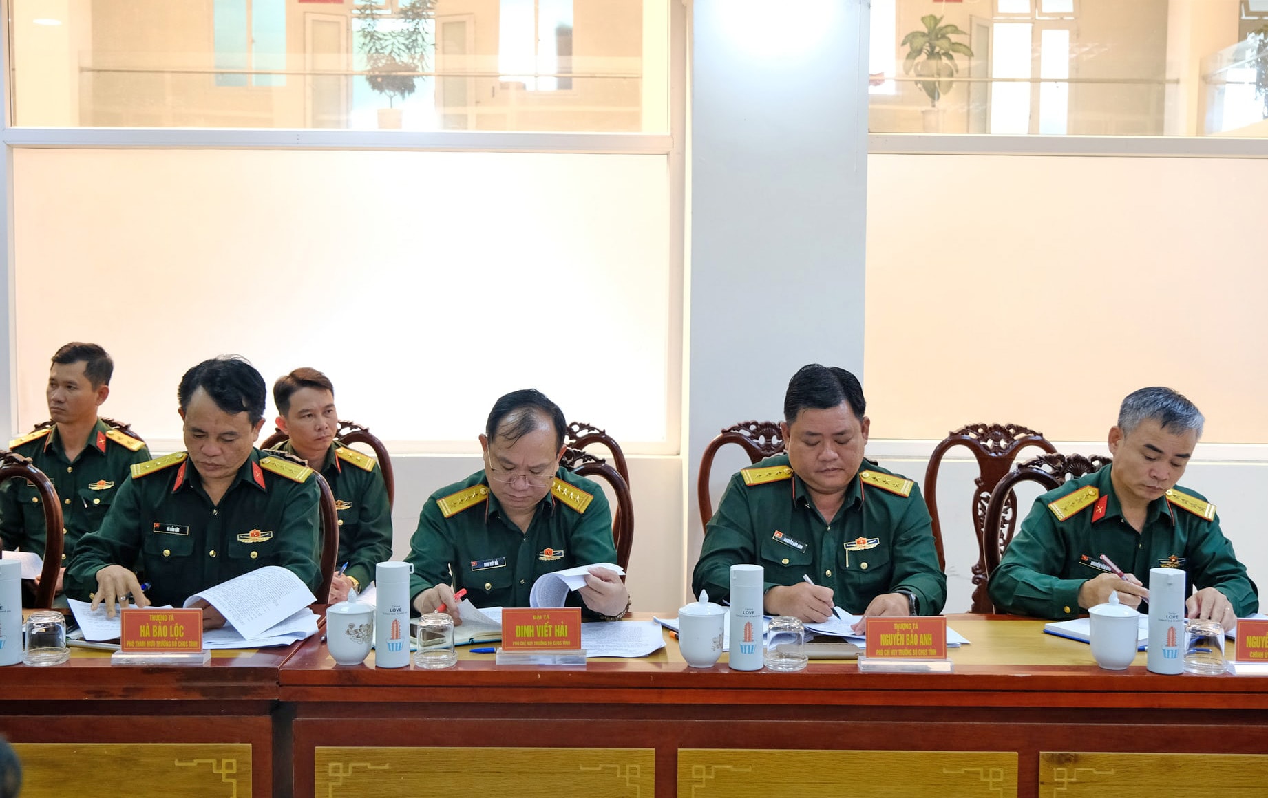 Các đồng chí thủ trưởng Bộ CHQS tỉnh tham dự buổi làm việc