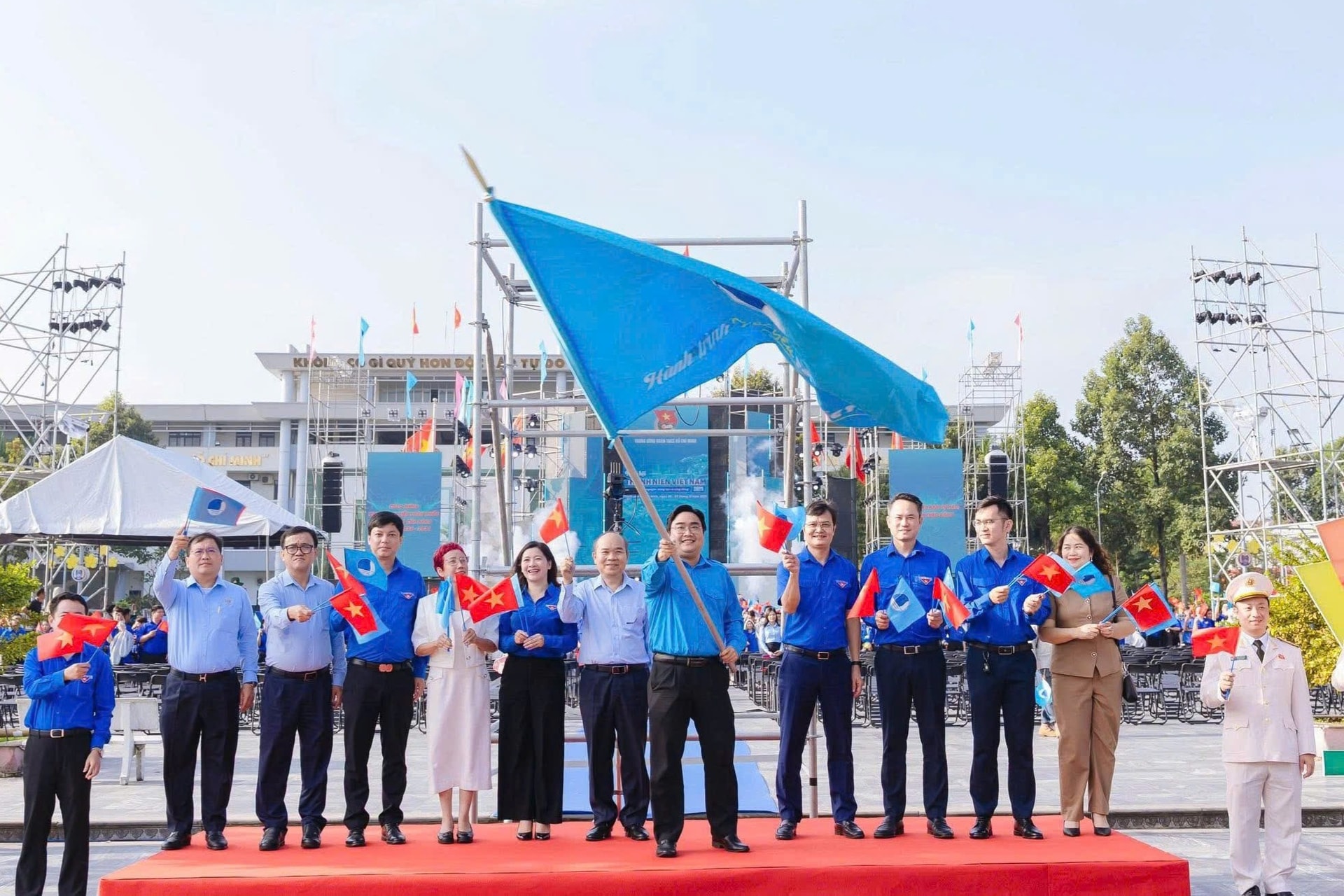 Tại chương trình, màn đồng diễn nghệ thuật với chủ đề “Tuổi trẻ Việt Nam vững bước dưới cờ Đảng – Tiên phong bước vào kỷ nguyên mới” quy tụ gần 2.000 bạn trẻ, tạo nên hình ảnh giàu khí thế và tinh thần đoàn kết. Tiếp nối là không gian “Tuổi trẻ sáng tạo” trưng bày sản phẩm công nghệ, mô hình đổi mới của thanh niên; khu giới thiệu dự án tình nguyện và không gian giao lưu về công nghệ, giáo dục, môi trường, chuyển đổi số.