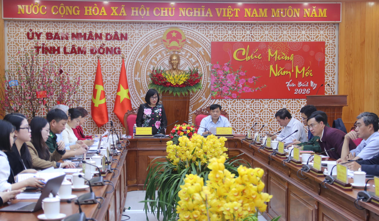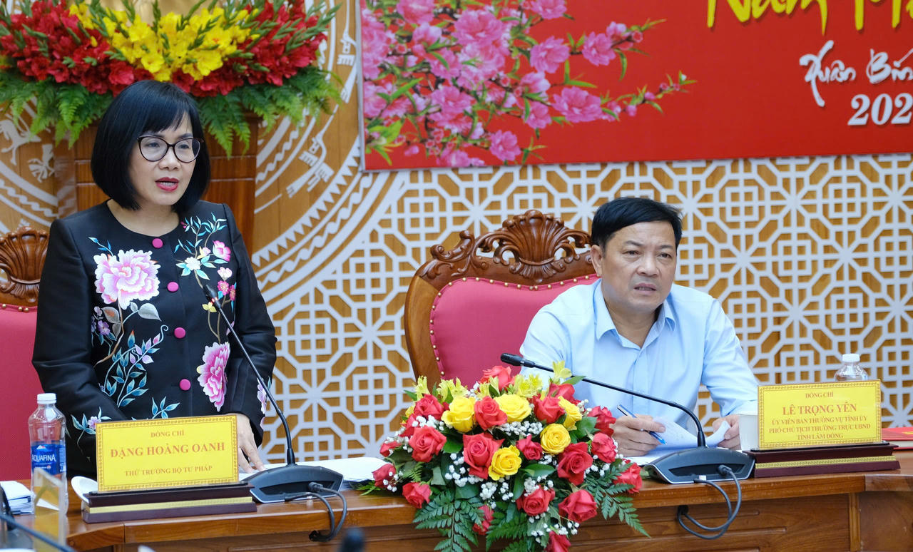 Thứ trưởng Bộ Tư pháp Đặng Hoàng Oanh cùng Phó Chủ tịch Thường trực Lâm Đồng Lê Trọng Yên chủ trì buổi làm việc.