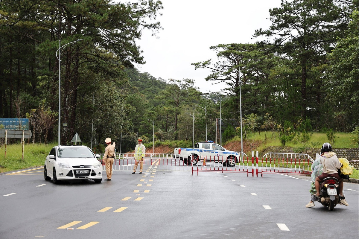 Lực lượng chức năng phong tỏa đèo Prenn, điều tiết phương tiện qua các hướng thay thế.