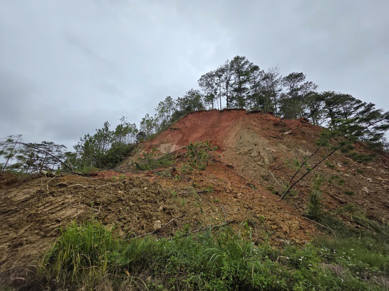 Trên tuyến Quốc lộ 27C, đoạn từ Km65+800 đến Km117+450 xuất hiện nhiều vị trí sạt lở, làm đất đá, cây cối đổ ập từ taluy dương xuống mặt đường. Ảnh: Báo Lâm Đồng
