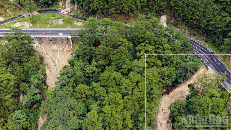 Vị trí sạt lở nghiêm trọng trên đường đèo Prenn.