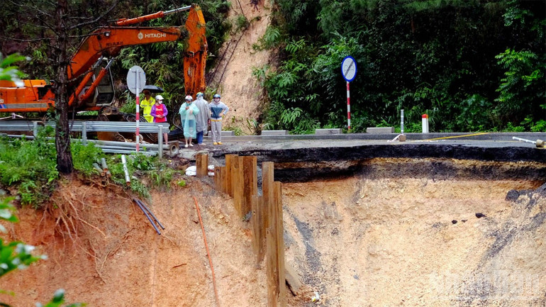Đồng thời, tổ chức phân luồng, phân làn giao thông, bảo đảm lưu thông và an toàn khi tham gia giao thông; thực hiện xác định nguyên nhân và đề xuất giải pháp xử lý, sửa chữa, khắc phục bảo đảm giao thông trước mắt, không ách tắc. Thường xuyên cập nhật tình hình thời tiết, diễn biến thiên tai; sự dịch chuyển, nứt gãy hạng mục công trình, báo cáo kịp thời về Ủy ban nhân dân tỉnh, Ban Chỉ huy Phòng thủ dân sự tỉnh biết, chỉ đạo.