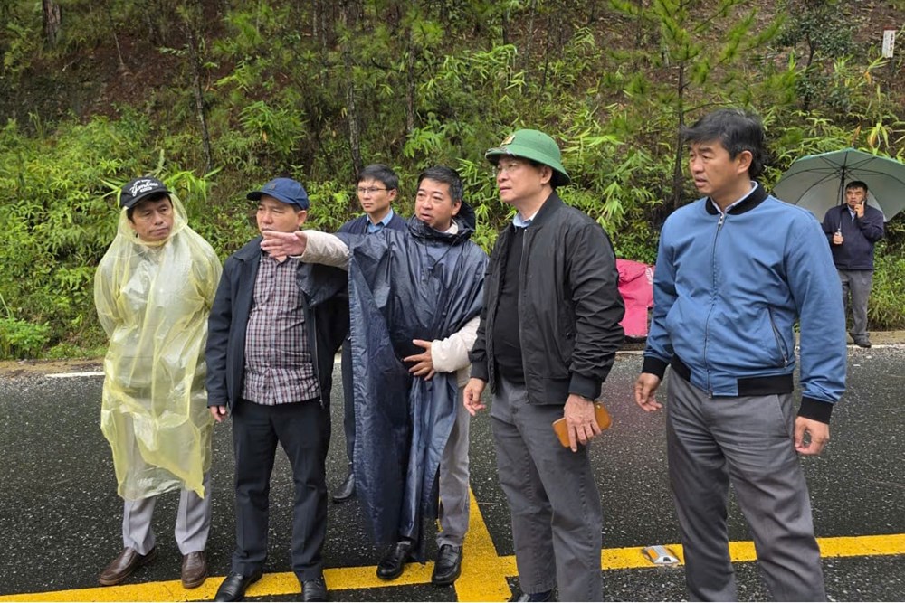Ông Hồ Văn Mười (thứ 2 từ bên phải sang), Chủ tịch UBND tỉnh Lâm Đồng có mặt tại hiện trường để chỉ đạo xử lý, khắc phục sự cố