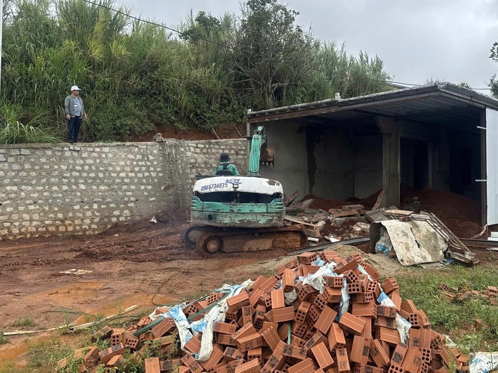 Lực lượng chức năng triển khai phá dỡ bằng phương án kết hợp thủ công và cơ giới, có máy đào và thiết bị chuyên dụng. Toàn bộ quá trình cưỡng chế được giám sát chặt chẽ nhằm bảo đảm an toàn, không ảnh hưởng đến khu vực lân cận. Việc xử lý được thực hiện theo đúng trình tự pháp luật.