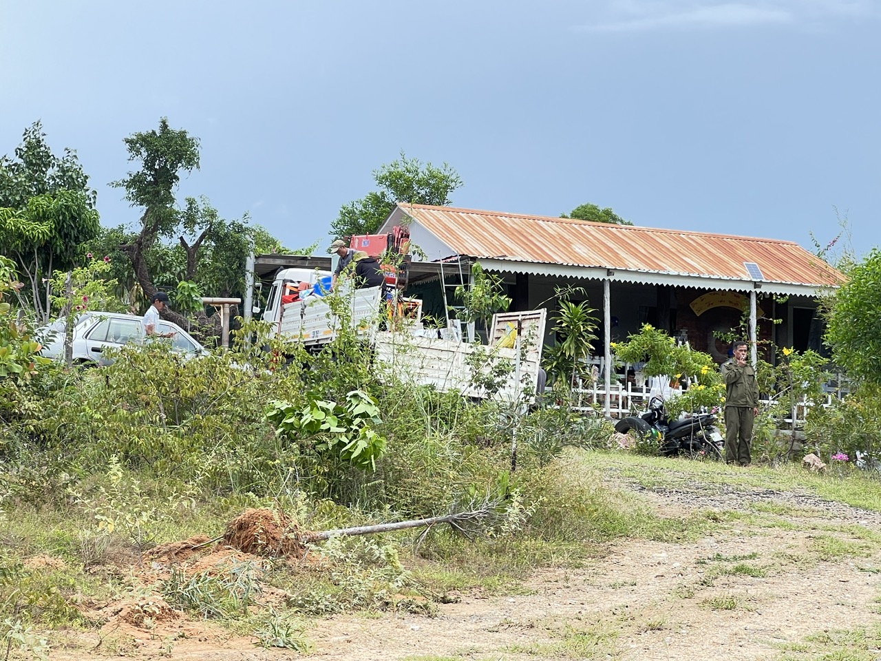 Tại buổi cưỡng chế, lực lượng chức năng đã tổ chức nhổ bỏ cây trồng, tháo dỡ một số công trình không phép trên đất và đo đạc lại diện tích đất lấn chiếm để bàn giao lại cho UBND phường Mũi Né quản lý.
