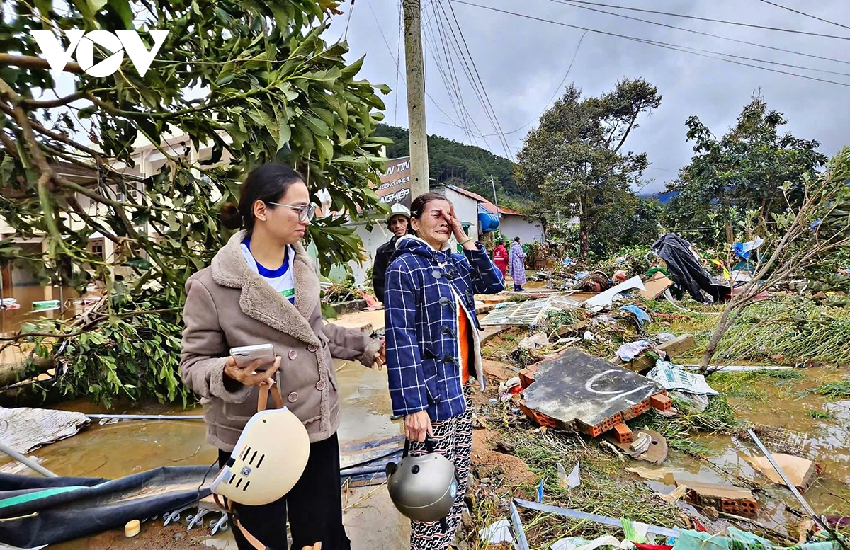 Người dân bàng hoàng trước cảnh nhà cửa, vườn tược bị cuốn trôi và vùi lấp trong bùn đất sau trận lũ quét dữ dội rạng sáng 20/11.