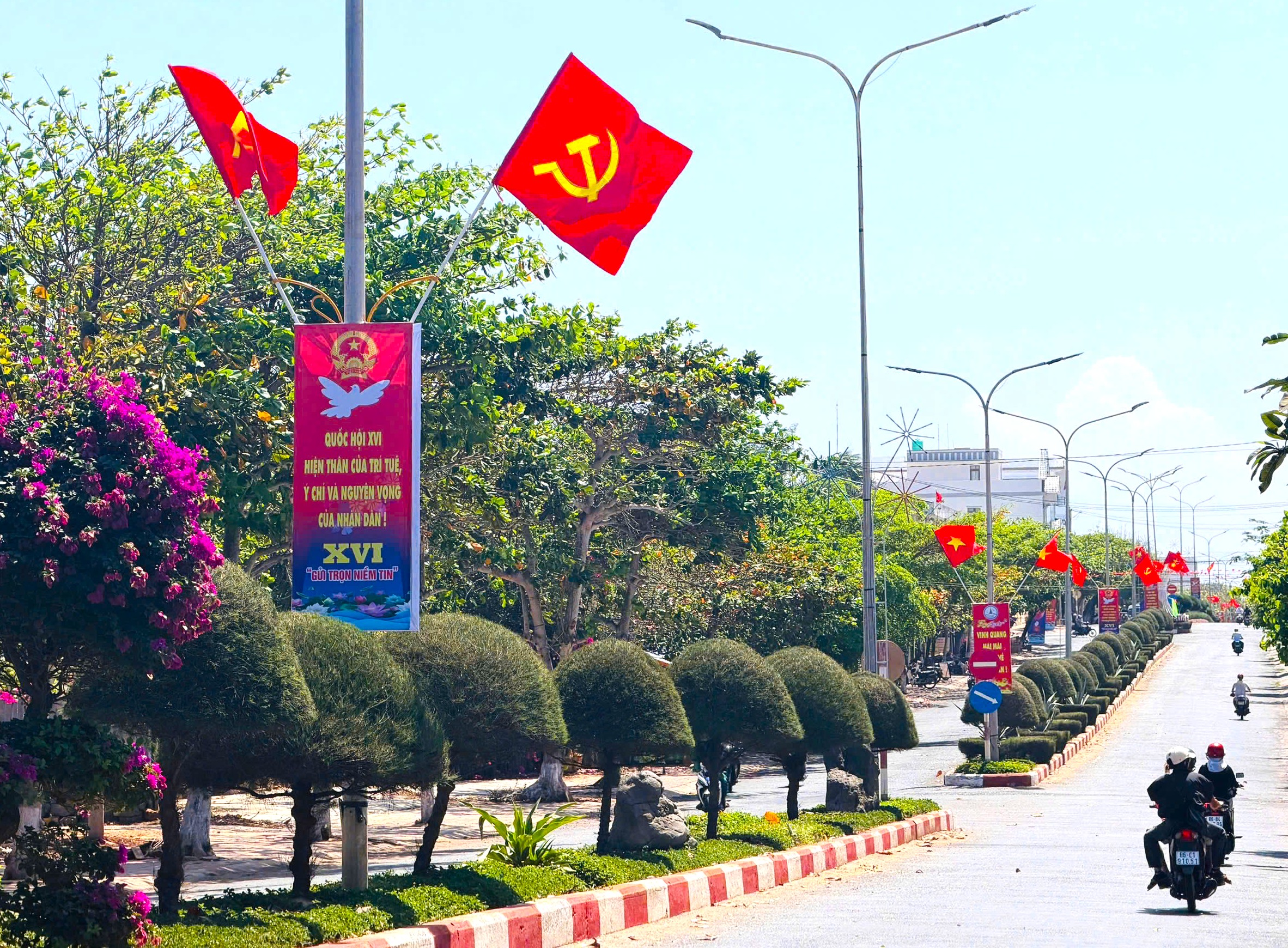 Nhiều tuyến đường đặc khu Phú Quý rực rỡ cờ hoa