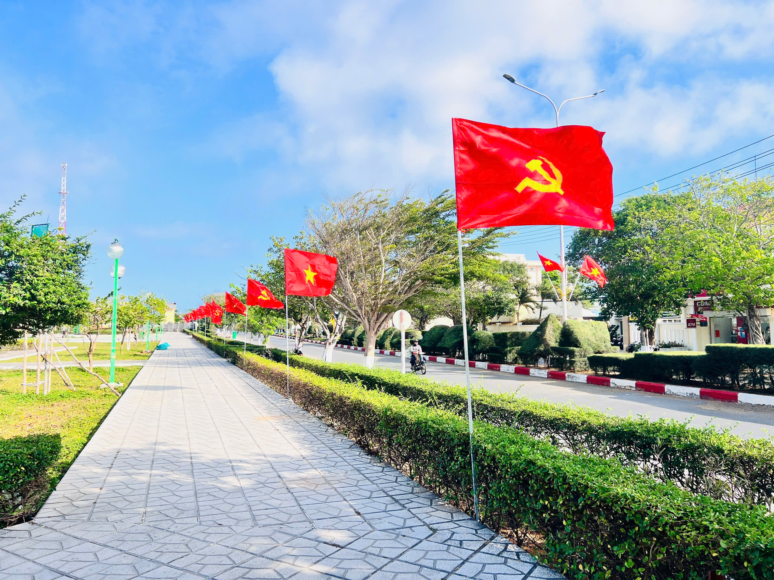Đường phố đặc khu Phú Quý rực rỡ cờ hoa, sẵn sàng cho "Ngày hội non sông"