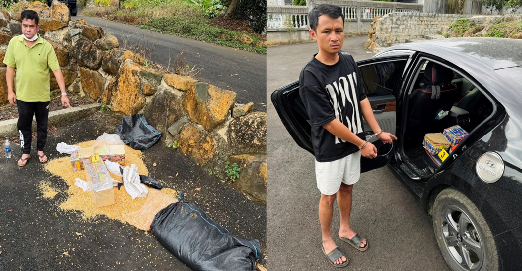 Gần đây nhất, ngày 23/1, Cơ quan Cảnh sát điều tra Công an tỉnh Lâm Đồng đã ra Quyết định khởi tố vụ án vận chuyển hàng cấm, khởi tố bị can và ra Lệnh tạm giam đối với Dương Quốc Bảo (SN 1977, trú tại phường 1 Bảo Lộc, tỉnh Lâm Đồng) và Lê Hồng Sơn (SN 1995, trú tại xã Đắk Ơ, tỉnh Đồng Nai). Đây là 2 đối tượng đã bị Công an phường B’Lao bắt quả tang khi đang vận chuyển trái phép 22 hộp pháo hoa nổ trái phép vào ngày 12/1. Để che dấu hành vi phạm tội, các đối tượng trên đã giấu số pháo hoa nổ vào bao tải chứa hạt bắp đã xát dập.