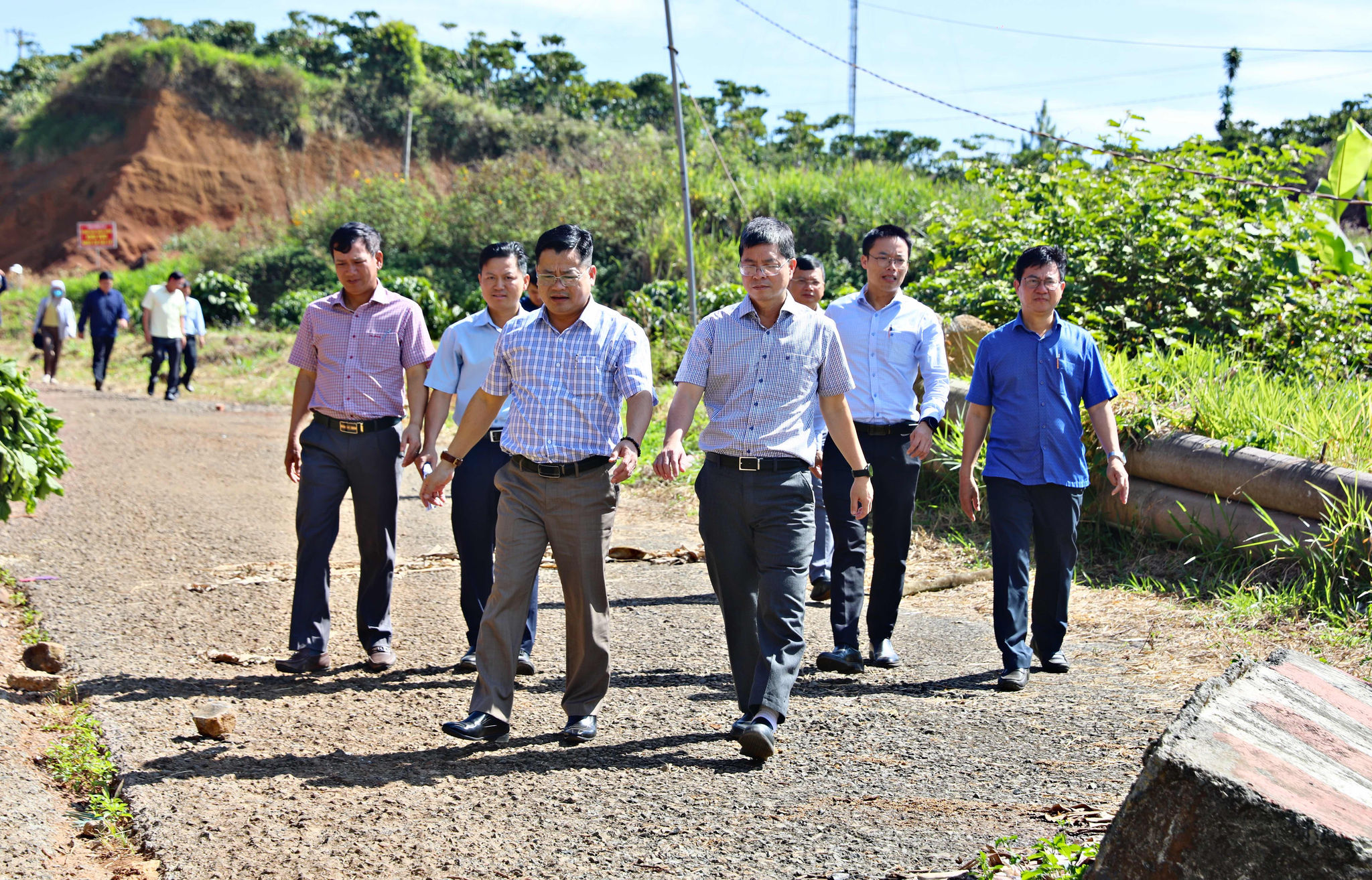 Ủy viên Ban Thường vụ Tỉnh ủy, Phó Chủ tịch UBND tỉnh Lâm Đồng Nguyễn Hồng Hải (ngoài cùng, bên phải) kiểm tra khu đường tránh phía Nam Bảo Lộc vào đầu tháng 1/2026
