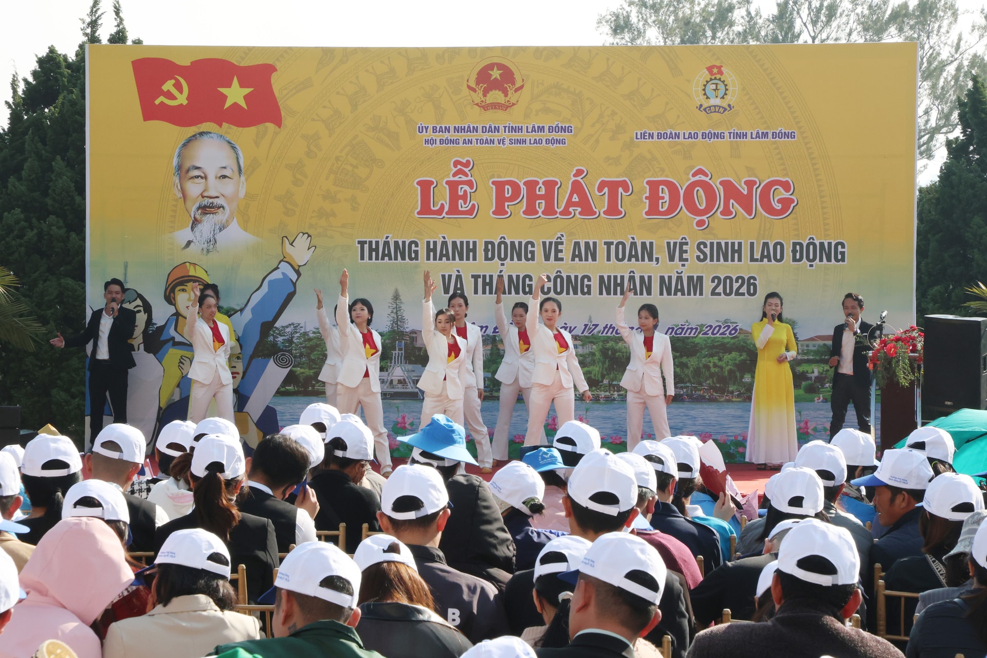 Sáng 17/4, Hội đồng an toàn, vệ sinh lao động (ATVSLĐ) tỉnh Lâm Đồng phối hợp với Liên đoàn Lao động tỉnh tổ chức Lễ phát động Tháng hành động về ATVSLĐ và Tháng công nhân năm 2026.