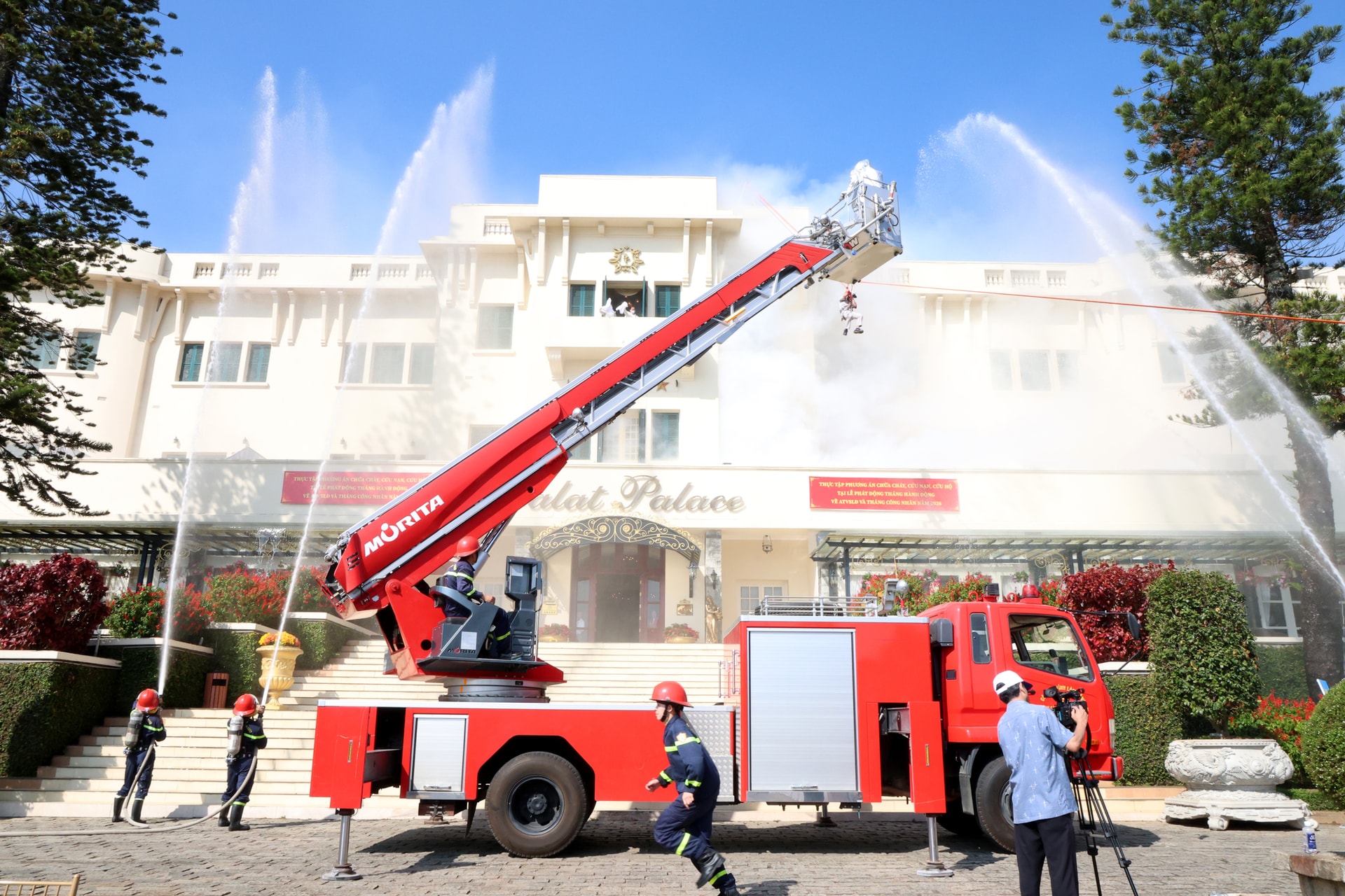 Buổi thực tập phương án chữa cháy và cứu nạn, cứu hộ tại Khách sạn Dalat Palace