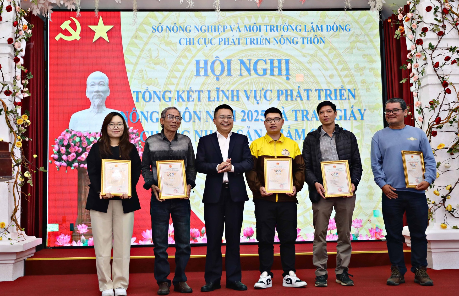 Lãnh đạo Sở Nông nghiệp và Môi trường Lâm Đồng trao Giấy chứng nhận OCOP của Chủ tịch UBND Lâm Đồng cho các 47 sản phẩm của 30 chủ thể