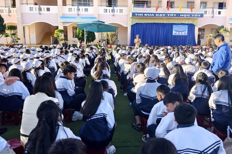 Công an phường Đông Gia Nghĩa đã tổ chức tuyên truyền pháp luật tại Trường THCS Phan Bội Châu và Trường Tiểu học và THCS Trần Văn Ơn với sự tham gia của hơn 1.000 học sinh, giáo viên. Nội dung tuyên truyền tập trung vào các quy định pháp luật liên quan trực tiếp đến học sinh như phòng, chống pháo nổ, an ninh mạng, phòng ngừa xâm hại trẻ em, bạo lực học đường, ma túy, thuốc lá điện tử và trật tự an toàn giao thông. Hình thức tuyên truyền sinh động, tăng cường trao đổi, tương tác đã góp phần nâng cao ý thức chấp hành pháp luật trong học sinh.