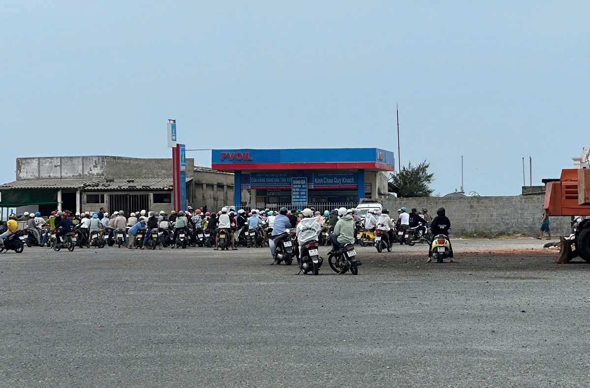 Hình ảnh người dân Đặc khu Phú Quý chờ mua xăng trong chiều ngày 5/1