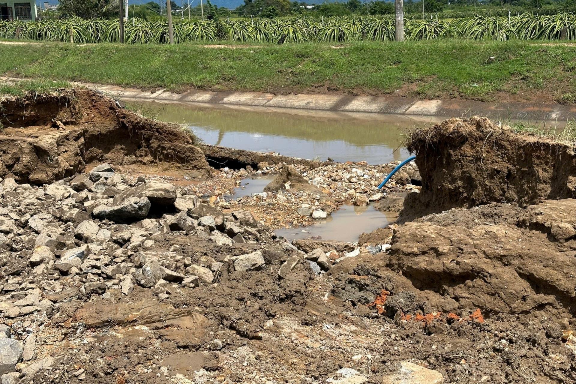 Công trình kênh mương ở xã Hàm Thuận bị hư hại do thiên tai trong năm 2025. Ảnh: Kiều Hằng