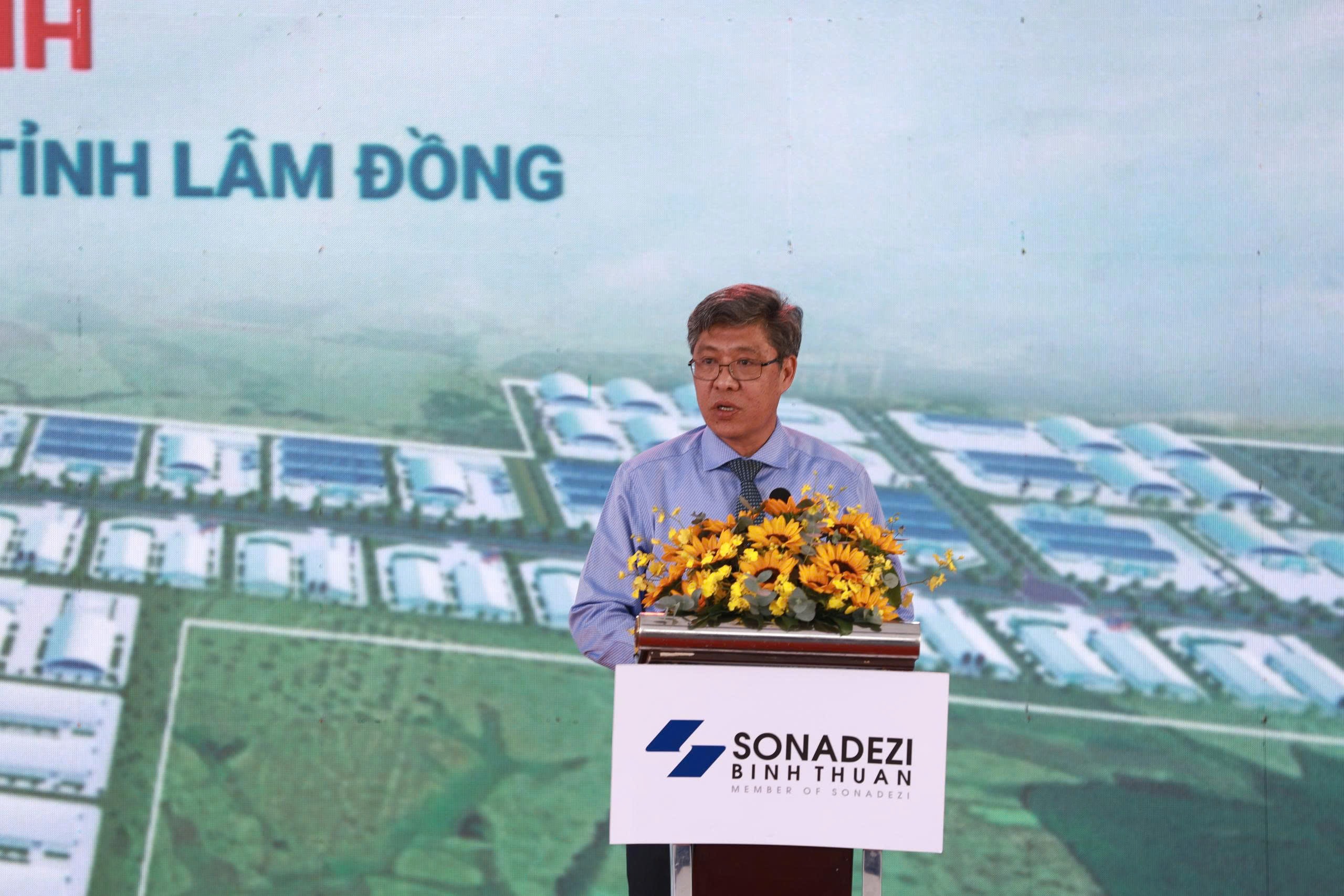 Phó Chủ tịch UBND tỉnh Lâm Đồng Nguyễn Minh phát biểu tại lễ khánh thành KCN Tân Đức. Ảnh: Quang Phương