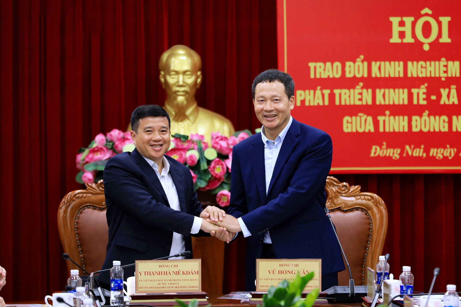 Bí thư Tỉnh ủy Đồng Nai Vũ Hồng Văn và Bí thư Tỉnh ủy Lâm Đồng Y Thanh Hà Niê Kđăm thống nhất cao chủ trương hợp tác tại hội nghị