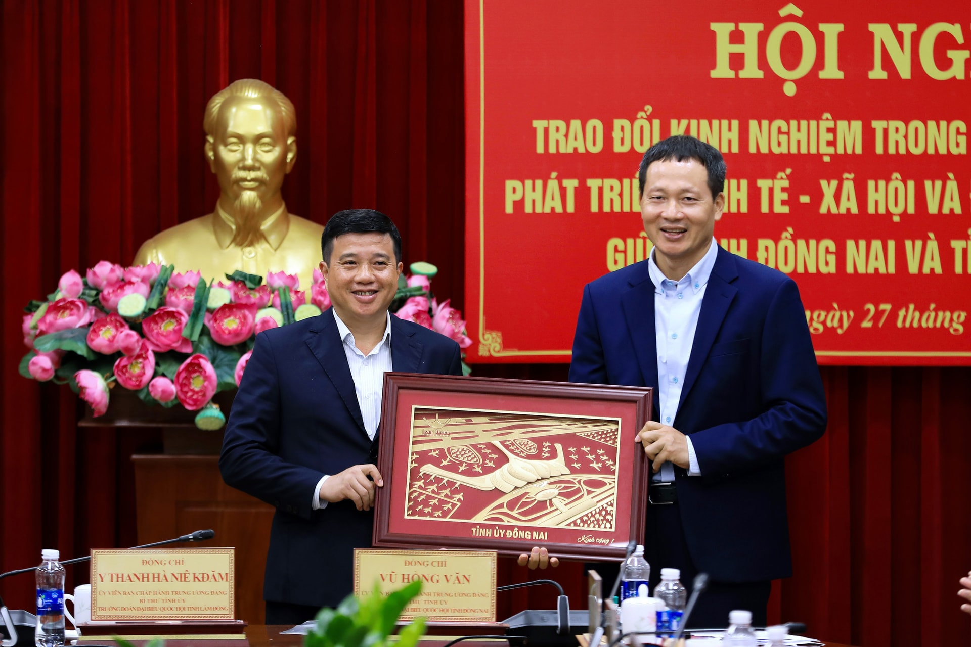 Bí thư Tỉnh ủy Lâm Đồng Y Thanh Hà Niê Kđăm tặng quà lưu niệm cho Ban Thường vụ Tỉnh ủy Đồng Nai