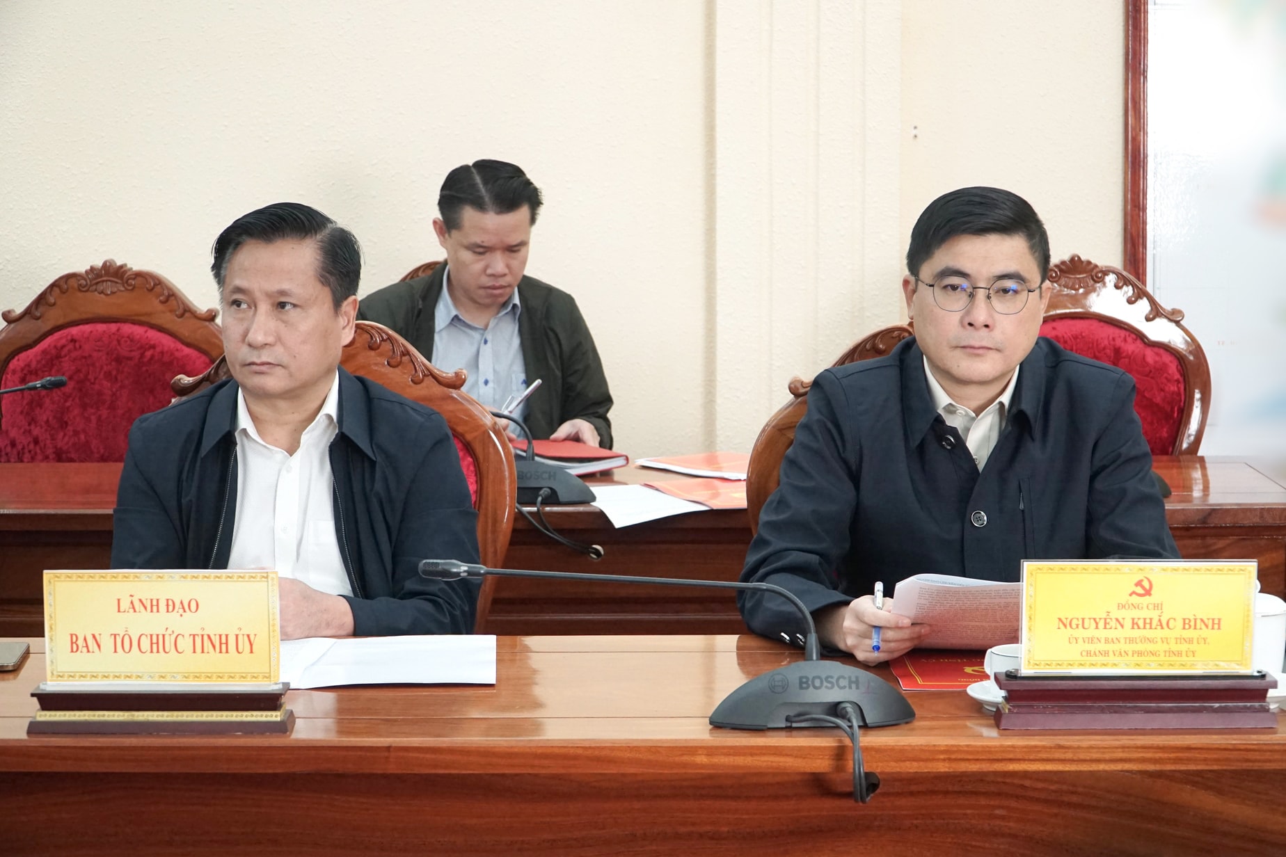 Các đồng chí: Nguyễn Khắc Bình, Ủy viên Ban Thường vụ Tỉnh ủy, Chánh Văn phòng Tỉnh ủy, Phó Trưởng Ban Thường trực Ban Chỉ đạo; Trần Văn Nam, Tỉnh ủy viên, Phó Trưởng Ban Thường trực Ban Tổ chức Tỉnh ủy Lâm Đồng dự Hội nghị