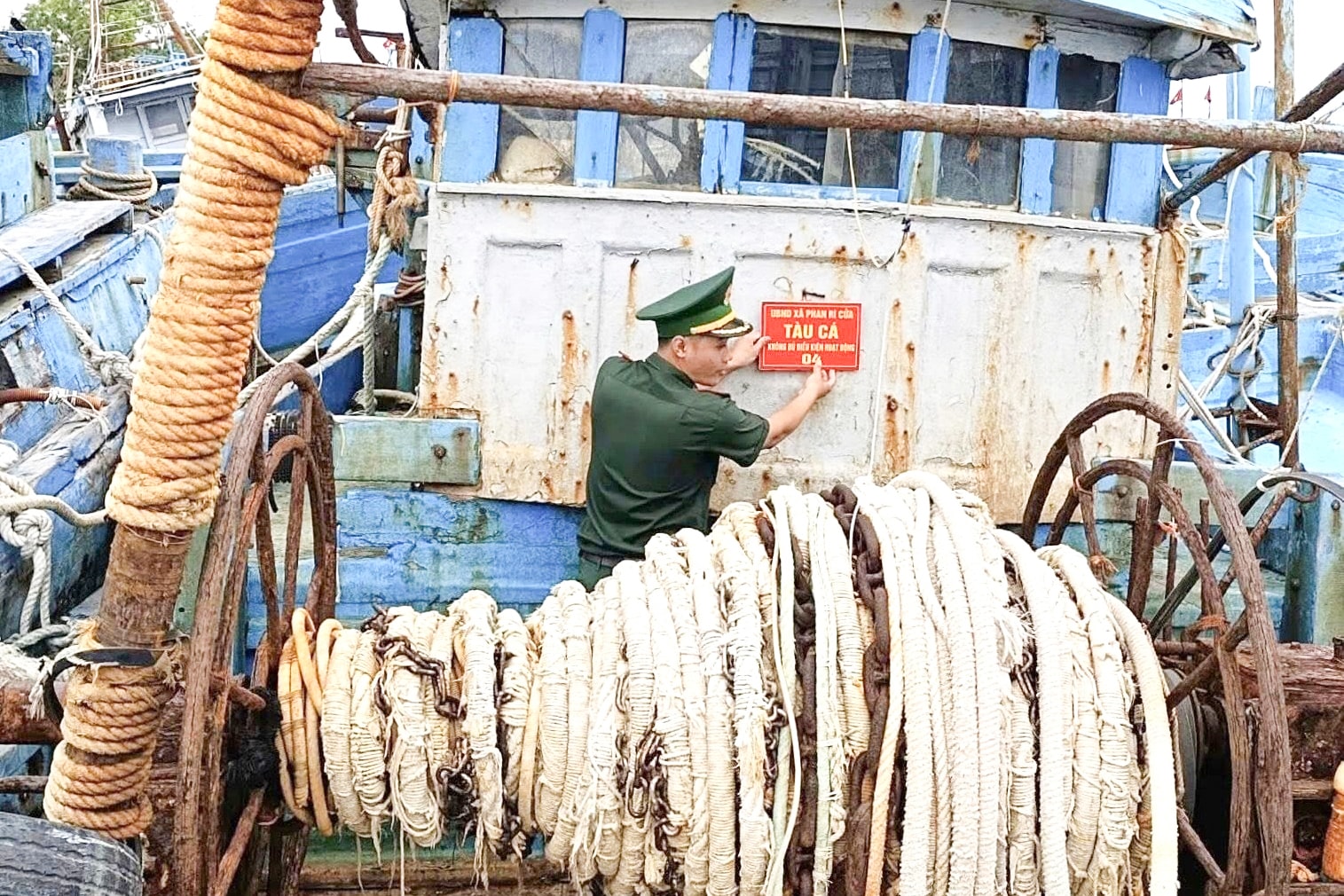 Đồn Biên phòng Hòa Minh gắn biển “Tàu cá không đủ điều kiện hoạt động” đối với tàu cá trên địa bàn