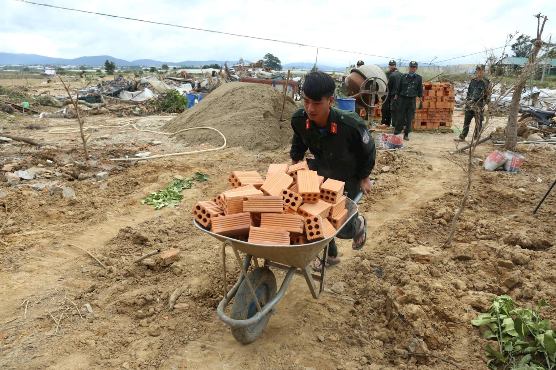 Lực lượng Quân sự tham gia hỗ trợ các gia đình dọn dẹp, chuẩn bị mặt bằng thi công