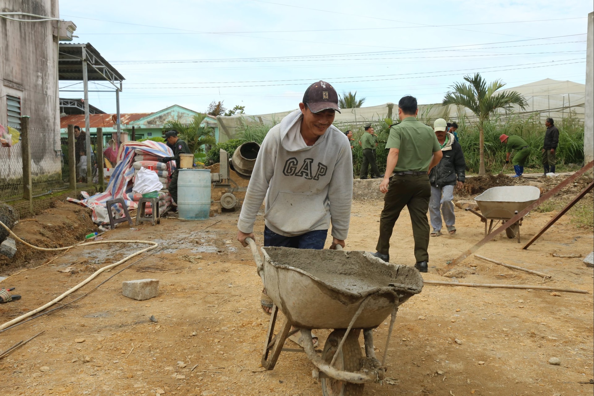 Trong chuyến kiểm tra tiến độ thi công ngày 9/12, Đại tá Nguyễn Văn Dũng, Phó Giám đốc Công an tỉnh đánh giá cao tinh thần trách nhiệm của lực lượng Công an địa phương và chính quyền cơ sở trong việc huy động nhân lực, phương tiện, san nền, đổ móng, dựng khung trong thời gian ngắn.