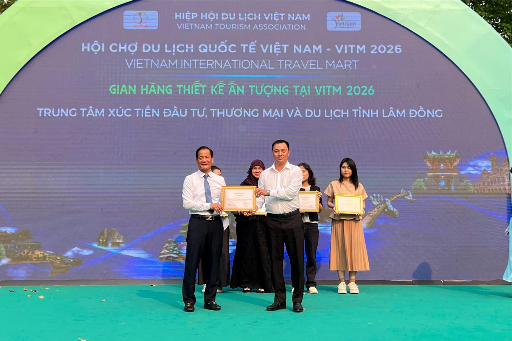 Đại diện Trung tâm Xúc tiến đầu tư, Thương mại và Du lịch tỉnh Lâm Đồng nhận giải “Gian hàng thiết kế ấn tượng”