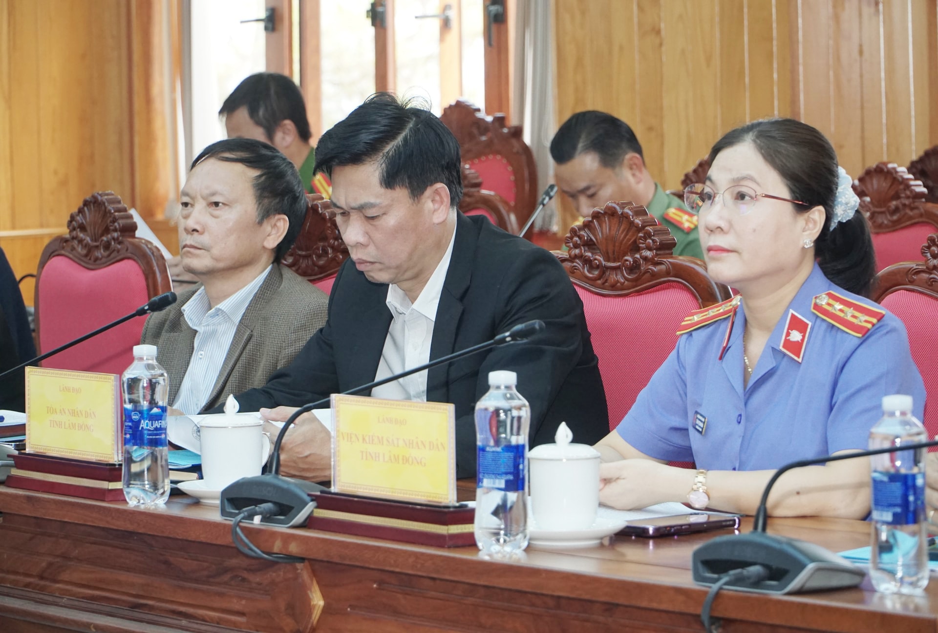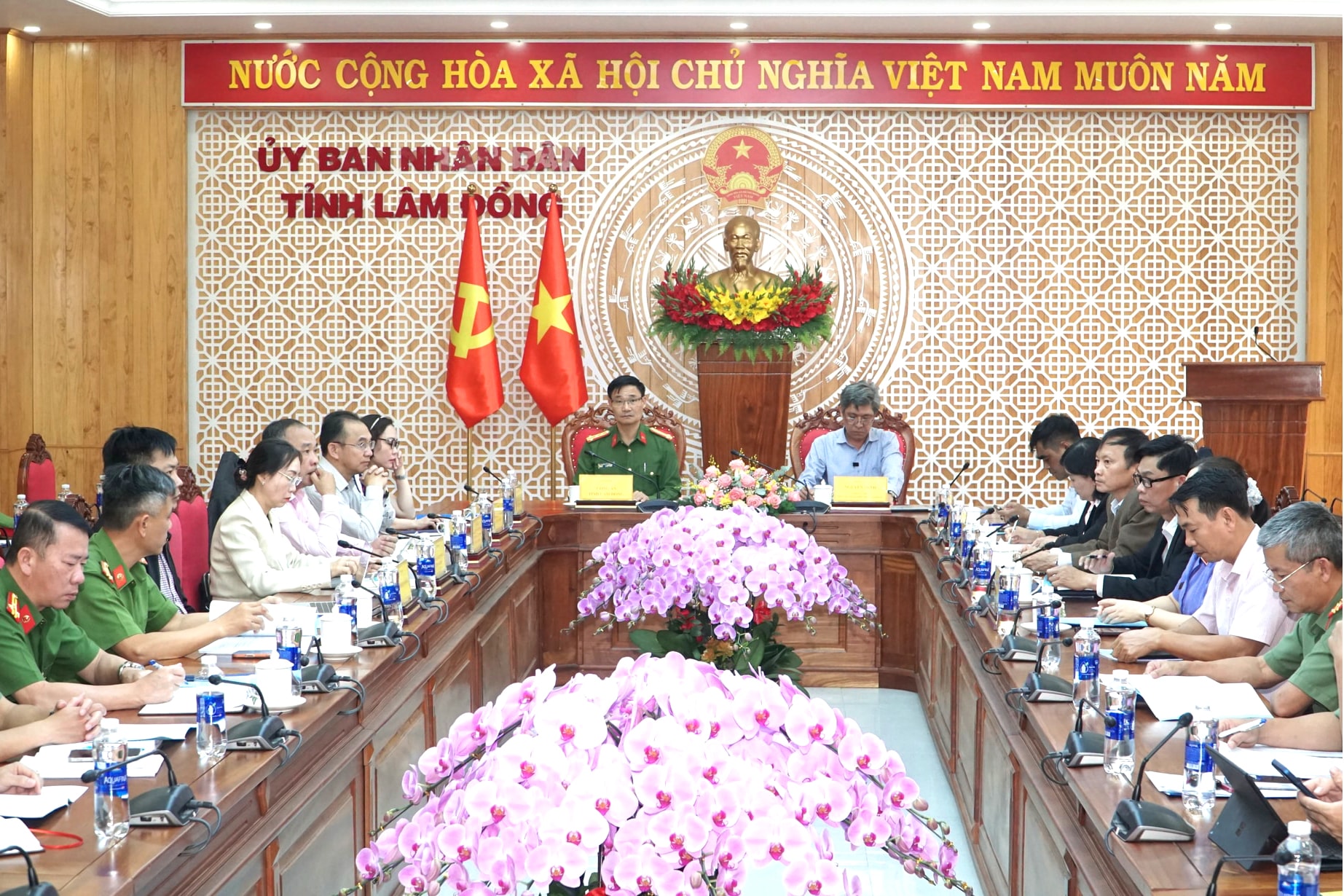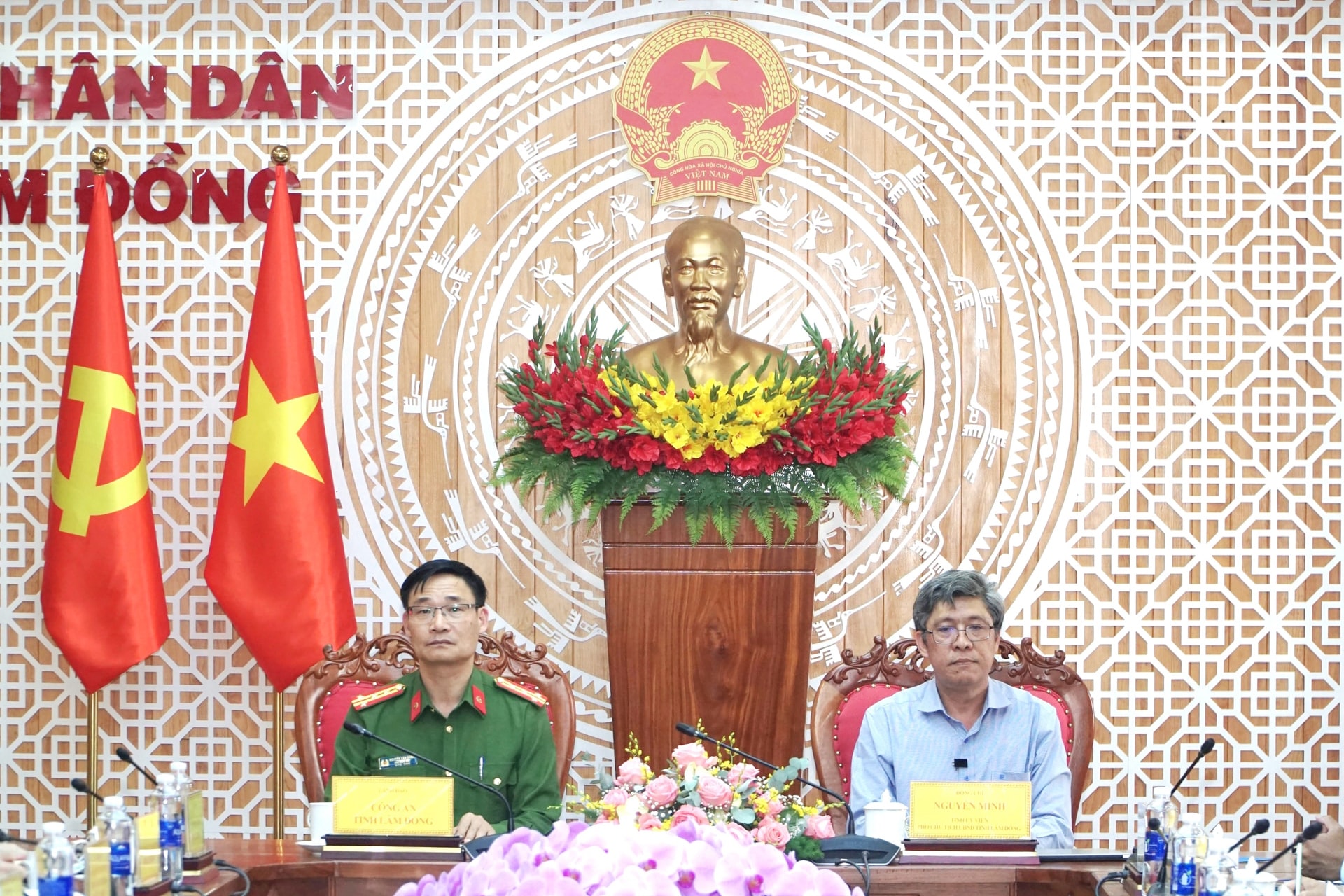 Đồng chí Nguyễn Minh, Tỉnh ủy viên, Phó Chủ tịch UBND tỉnh và Đại tá Nguyễn Văn Dũng, Phó Giám đốc Công an tỉnh Lâm Đồng đồng chủ trì Hội nghị