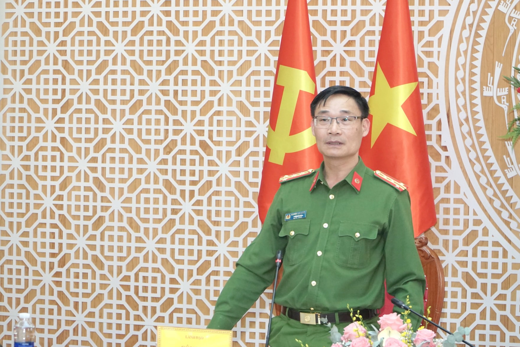 Đại tá Nguyễn Văn Dũng, Phó Giám đốc Công an tỉnh Lâm Đồng phát biểu tại Hội nghị