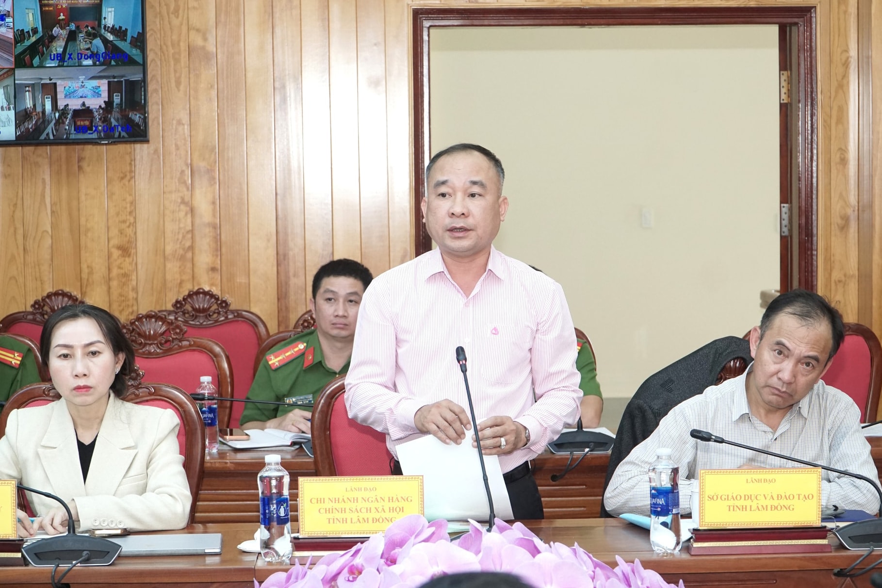 Lãnh đạo Chi nhánh Ngân hàng Chính sách xã hội tỉnh Lâm Đồng báo cáo tại Hội nghị