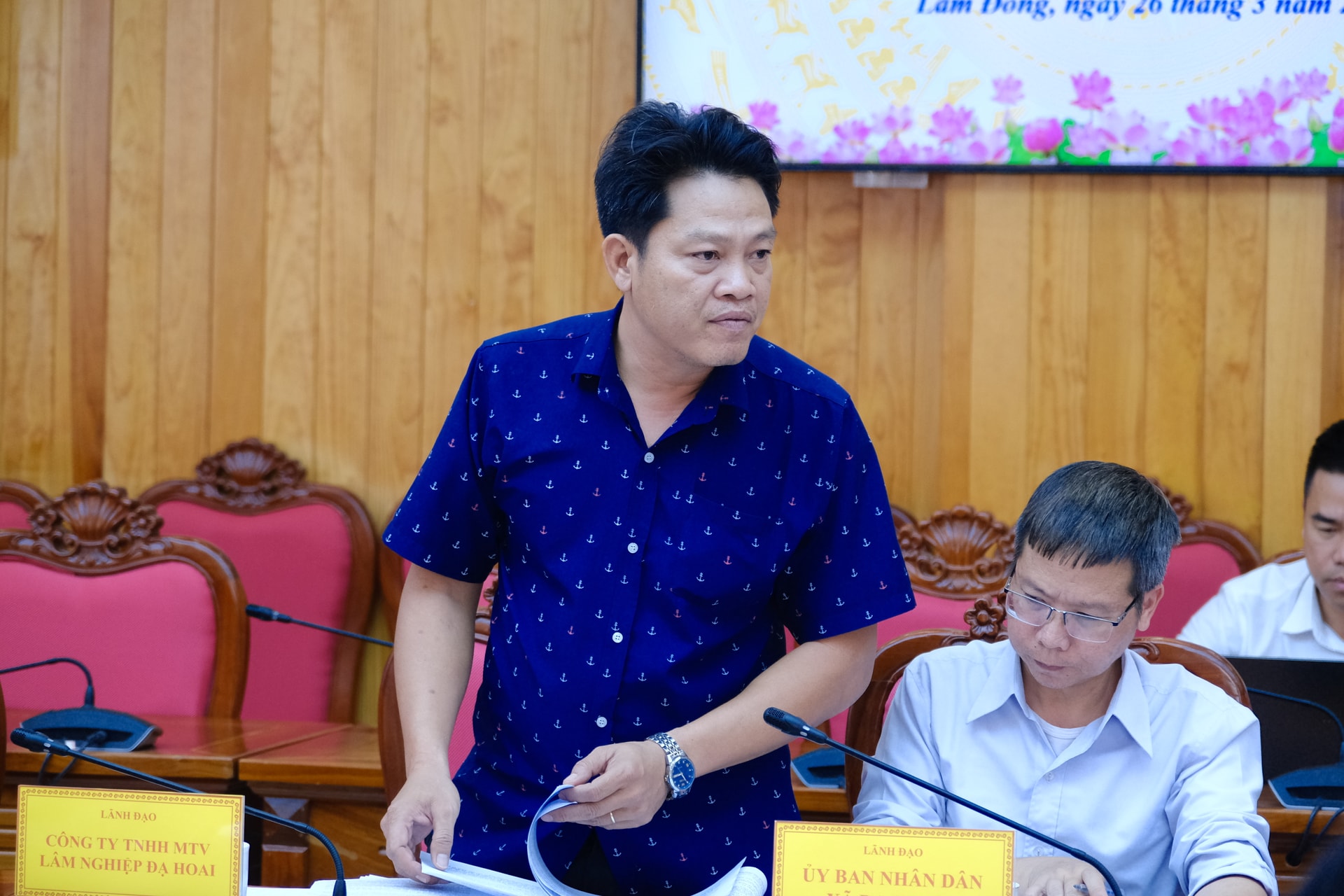 Đại diện lãnh đạo Công ty TNHH MTV Lâm nghiệp Đạ Huoai phát biểu