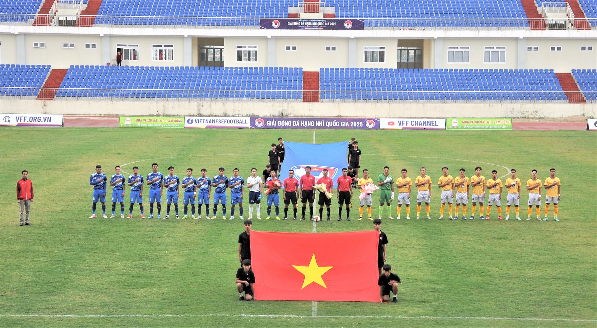 Một trận đấu diễn ra trên sân Đà Lạt trong mùa giải hạng Nhì quốc gia 2025