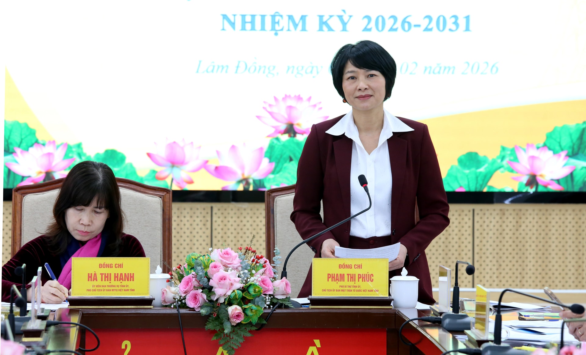 Chủ trì hội nghị có các đồng chí: Phạm Thị Phúc, Phó Bí thư Tỉnh ủy, Chủ tịch Ủy ban MTTQ Việt Nam tỉnh; Hà Thị Hạnh, Ủy viên Ban Thường vụ Tỉnh ủy, Phó Chủ tịch Ủy ban MTTQ Việt Nam tỉnh.