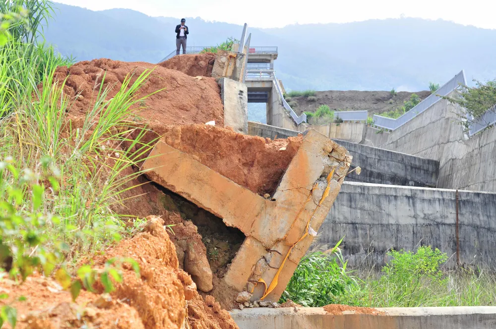 Thế nhưng, đầu tháng 7-2023, khu vực sườn đồi bên phải công trình xuất hiện hàng loạt vết nứt rộng 20-30 cm, kéo dài qua khu dân cư thôn Đông Anh. Các vết nứt lan nhanh, đất sụt lún từng mảng, gây hư hại nghiêm trọng cho 12,7 ha đất, trong đó có 6 ha nằm trong phạm vi dự án. Ba căn nhà bị sập hoàn toàn, hai căn khác nứt toác, nhiều diện tích cà phê, dâu tằm bị cuốn trôi.
