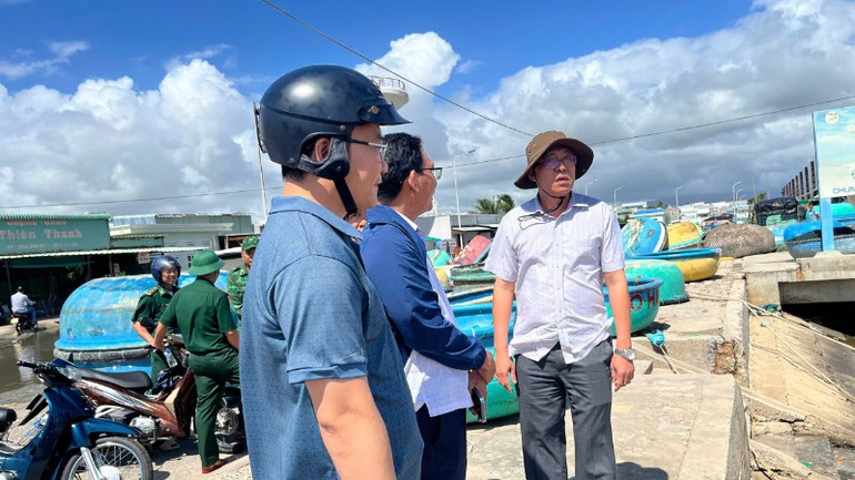 Đồng chí Nguyễn Minh, Phó Chủ tịch Ủy ban nhân dân tỉnh kiểm tra cửa biển Liên Hương.