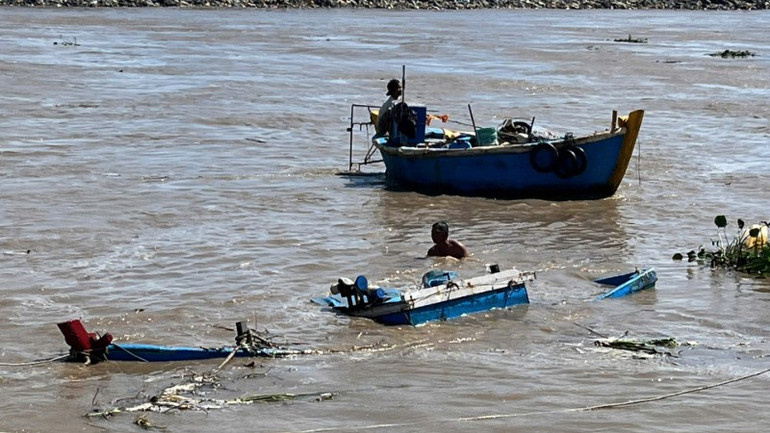 Nhiều tàu cá bị dòng nước cuốn trôi.