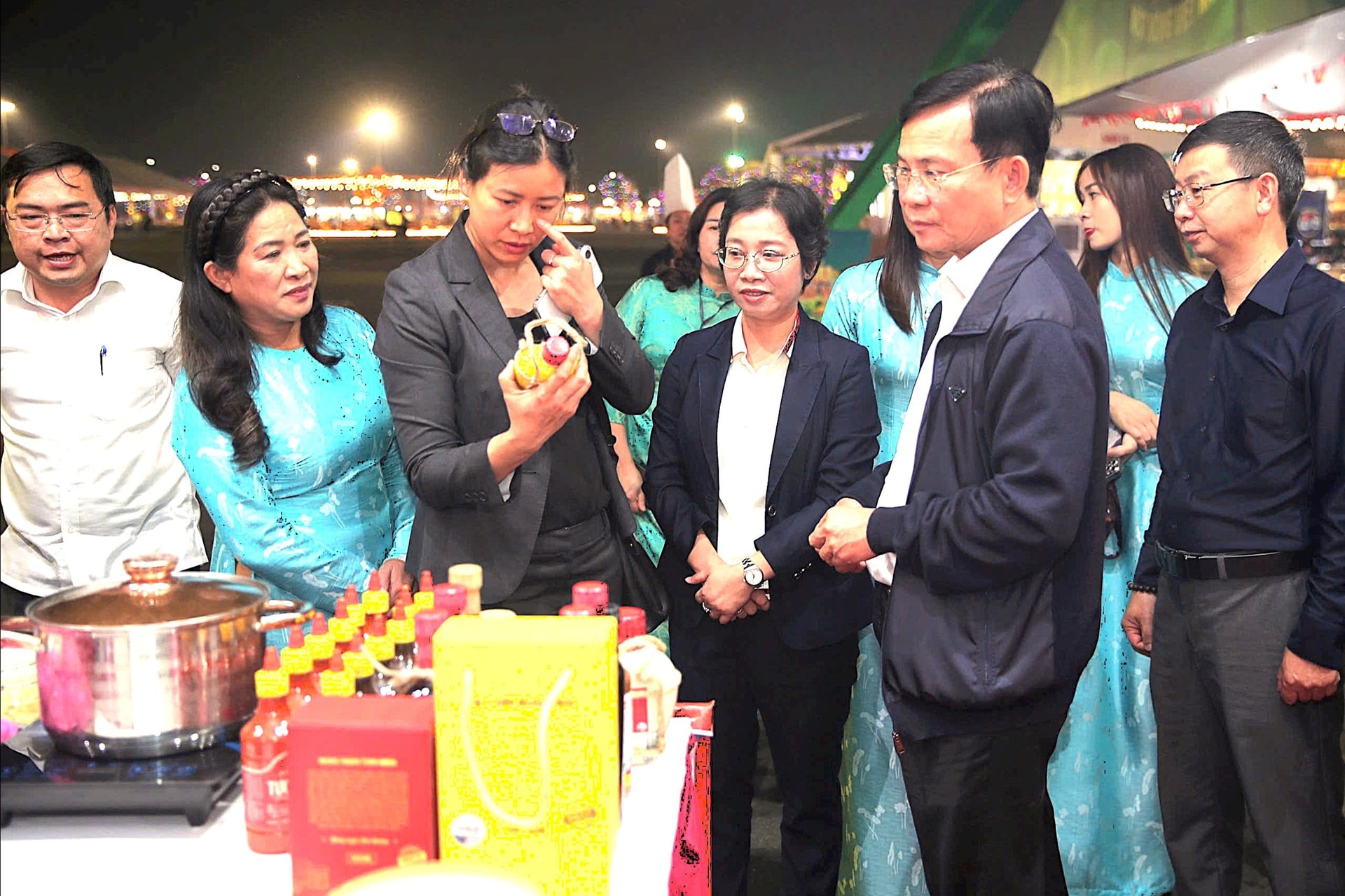Đồng chí Hồ Văn Mười, Phó Bí thư Tỉnh ủy, Chủ tịch UBND tỉnh Lâm Đồng tham quan các gian hàng ẩm thực tại Hội chợ mùa Thu 2025