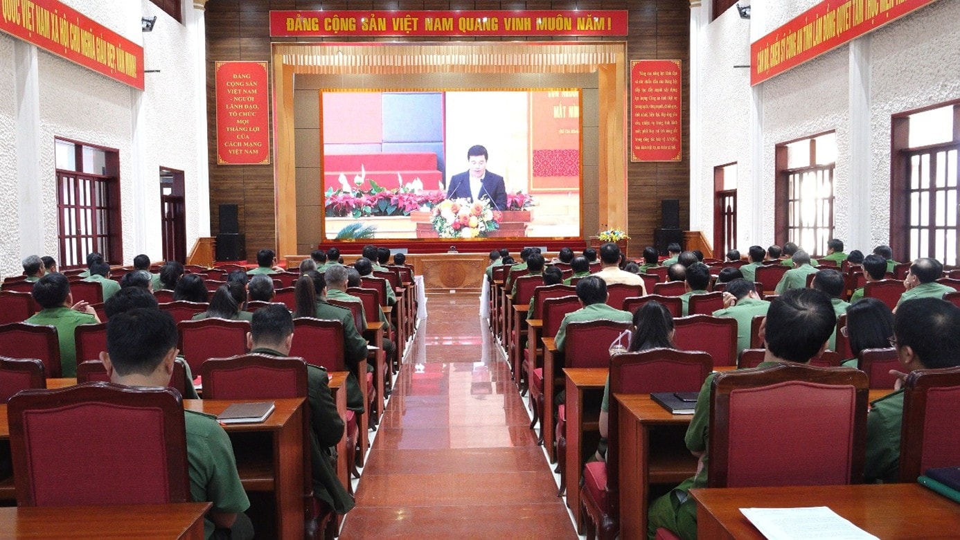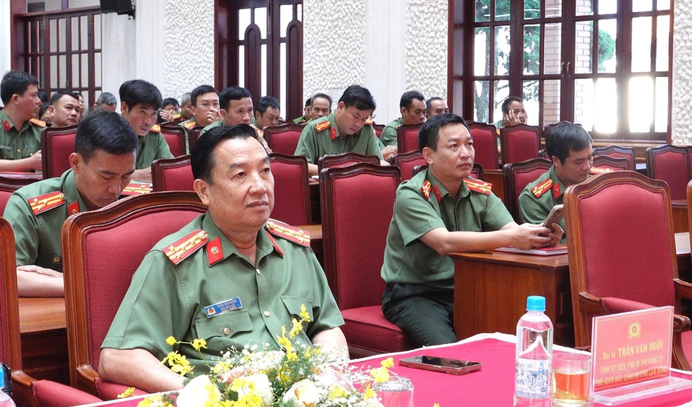 Tại điểm cầu Công an tỉnh Lâm Đồng, hơn 180 cán bộ, chiến sĩ tham dự Hội nghị. Ảnh: Võ Trang - Lê Thắng