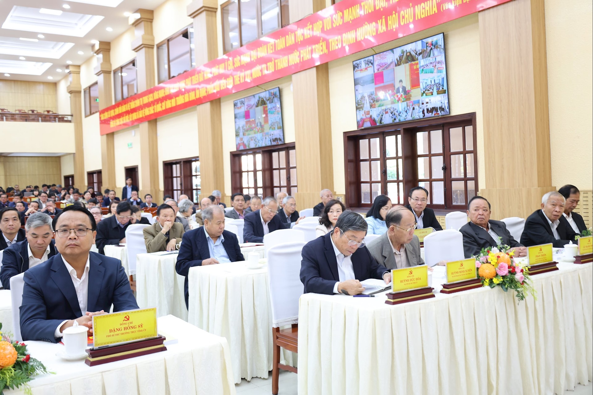 Phó Bí thư Thường trực Tỉnh ủy Đặng Hồng Sỹ và nguyên lãnh đạo tỉnh dự Hội nghị