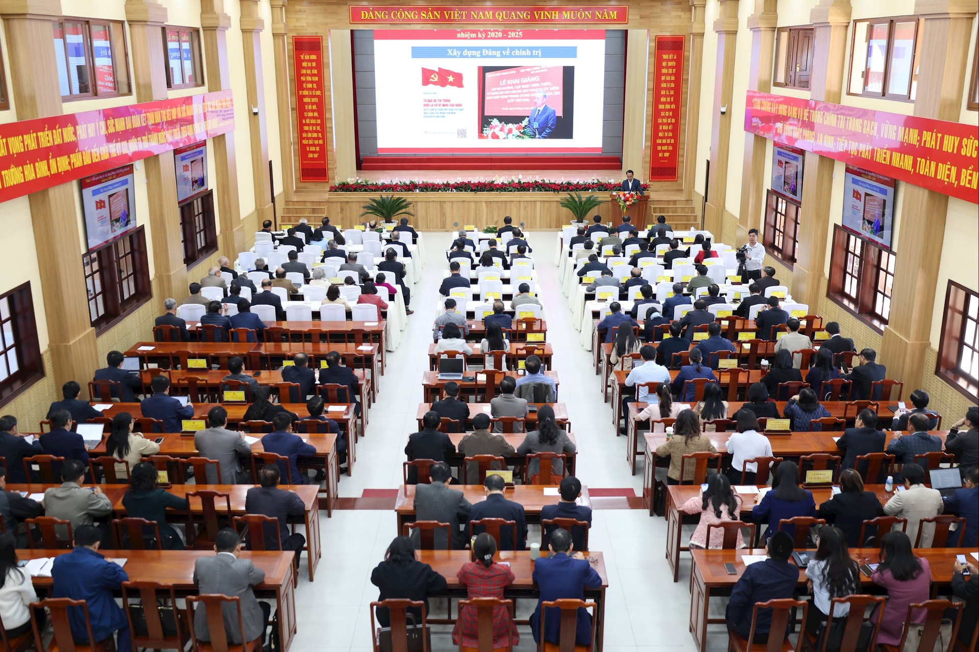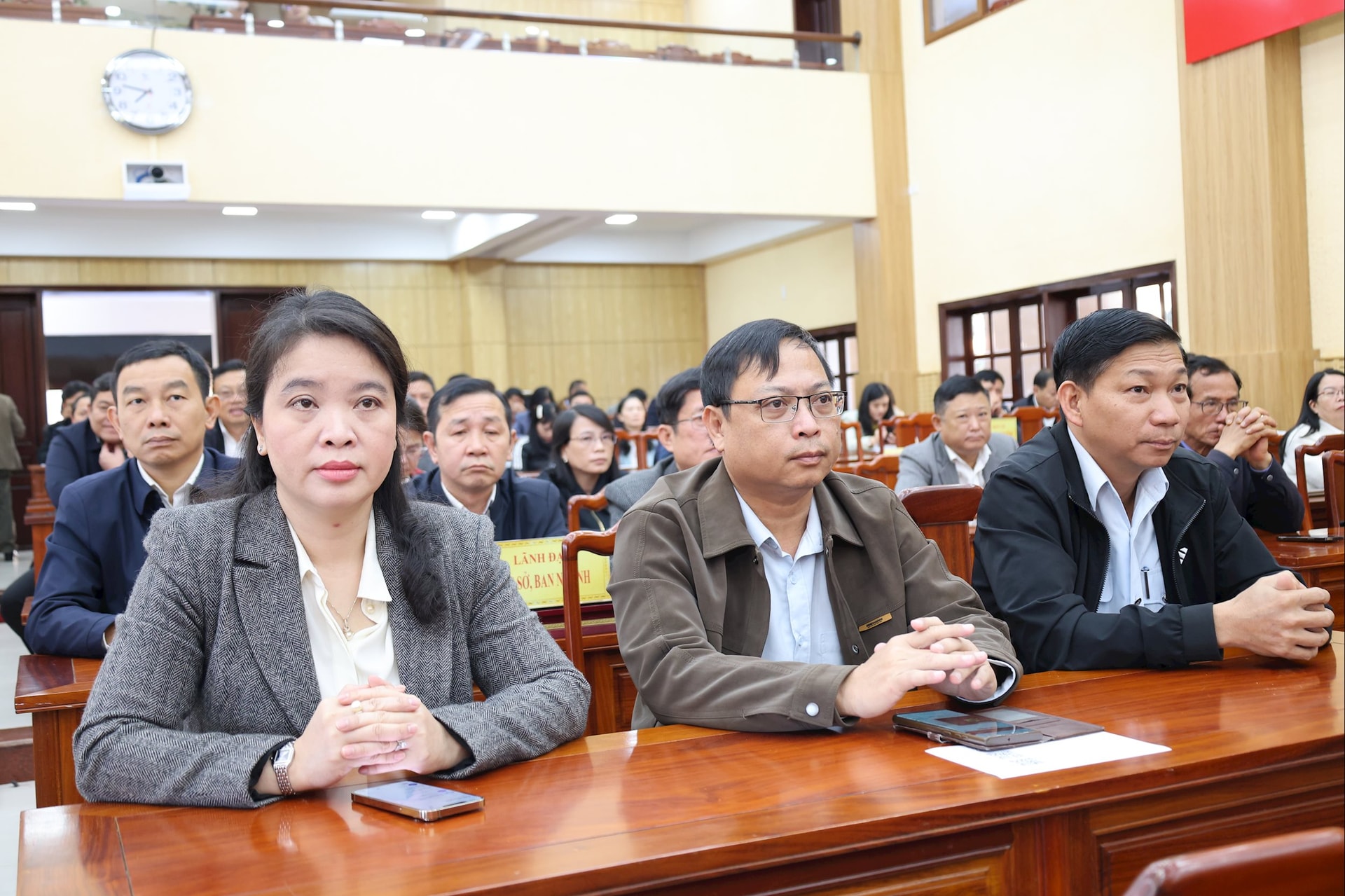 Đồng thời đề nghị toàn thể các đại biểu dự Hội nghị chú ý theo dõi, lắng nghe, tập trung tiếp thu các nội dung do Báo cáo viên truyền đạt.