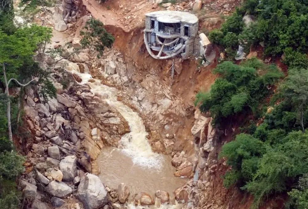 Vụ vỡ hồ chứa đêm 1-11 xé toạc hẻm núi Tân Lai ở xã Tuy Phong.