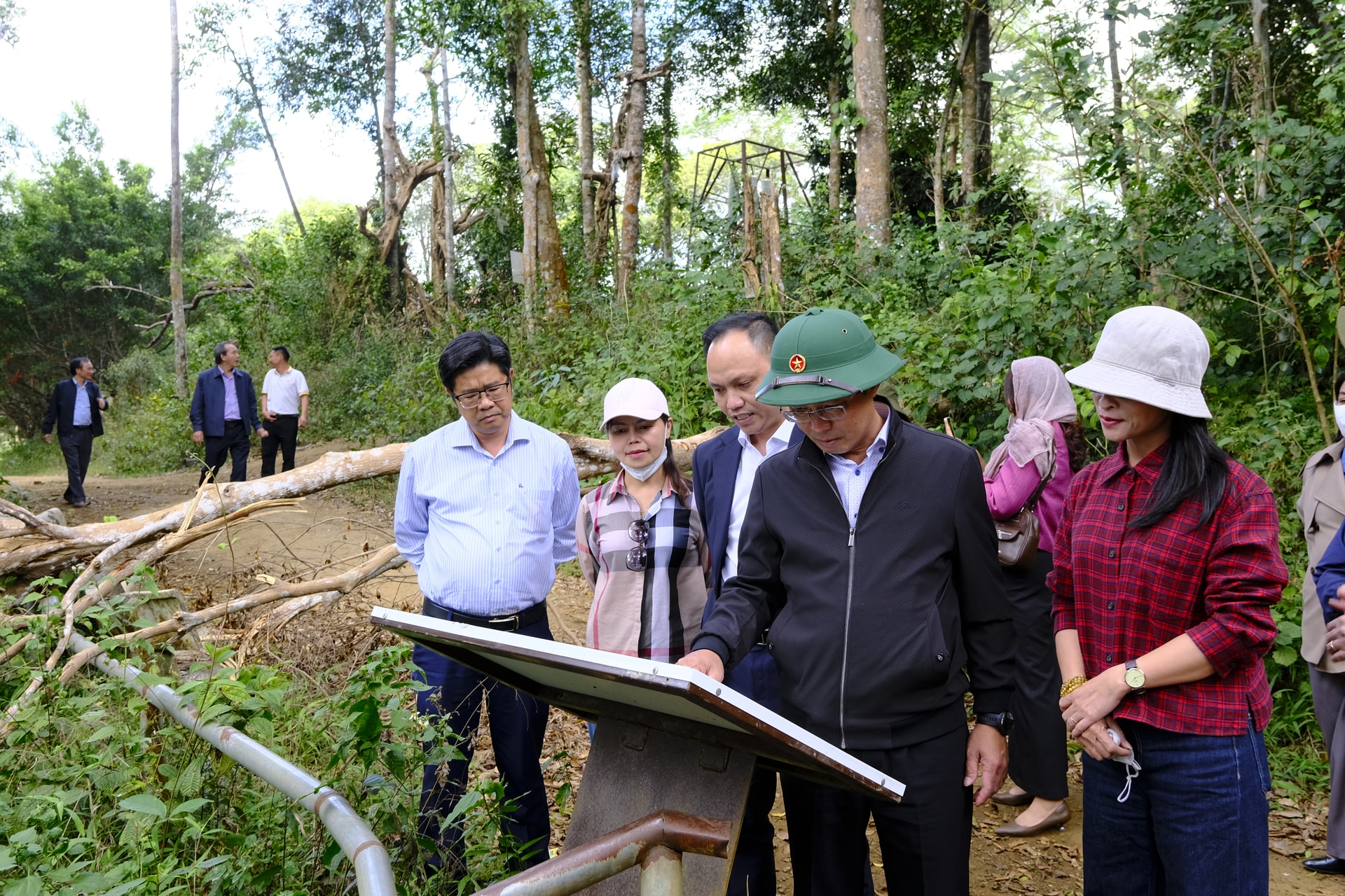 Đoàn công tác khảo sát tại Trung tâm Thông tin CVĐC toàn cầu UNESCO Đắk Nông thuộc địa bàn xã Trường Xuân