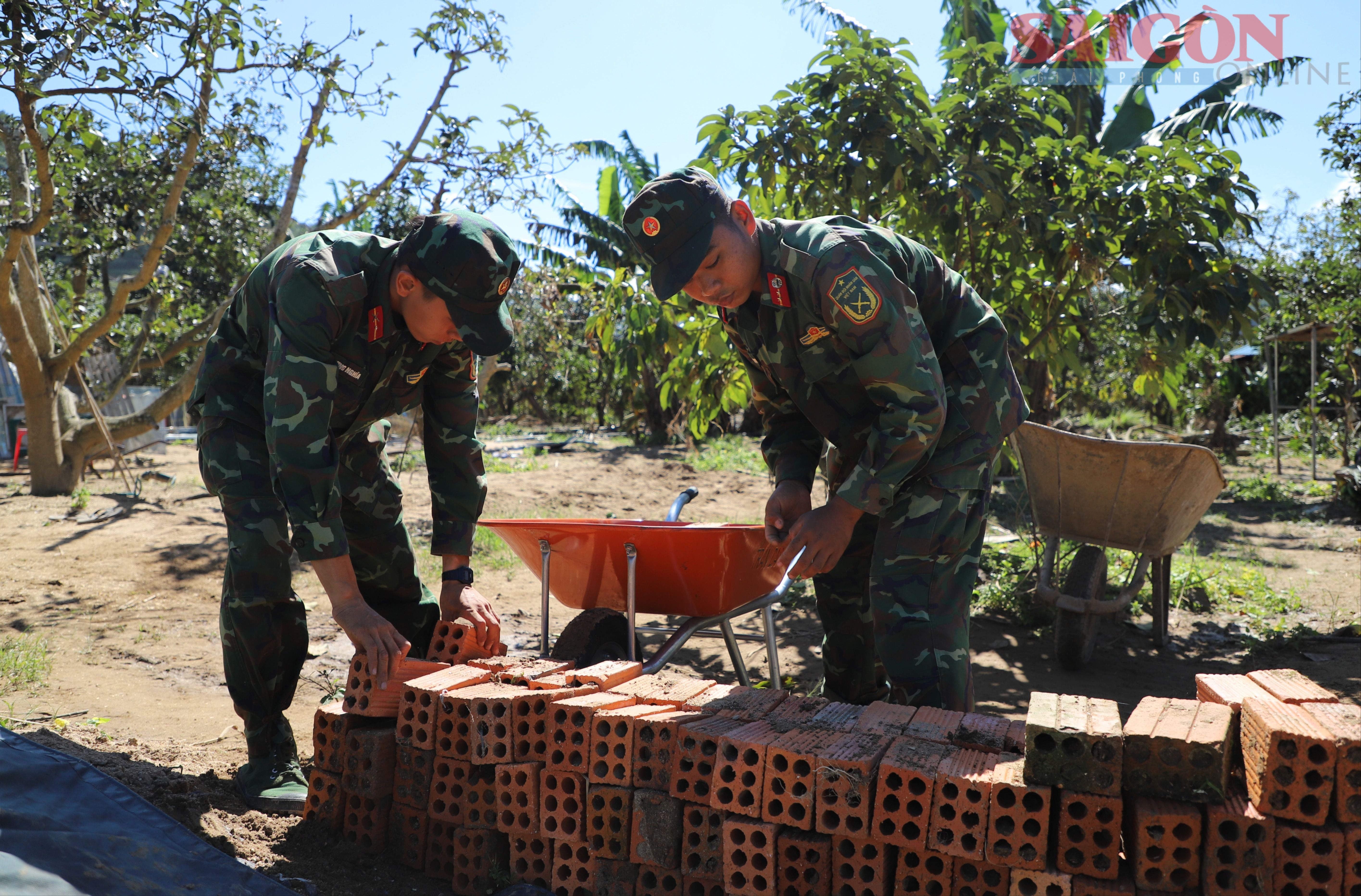 Ngay sau lễ khởi công, các cán bộ, chiến sĩ thuộc Sư đoàn 5, Bộ Tư lệnh Quân khu 7 khẩn trương dọn dẹp mặt bằng, xây lại nhà mới cho người dân xã D’ran, tỉnh Lâm Đồng. Ảnh: ĐOÀN KIÊN