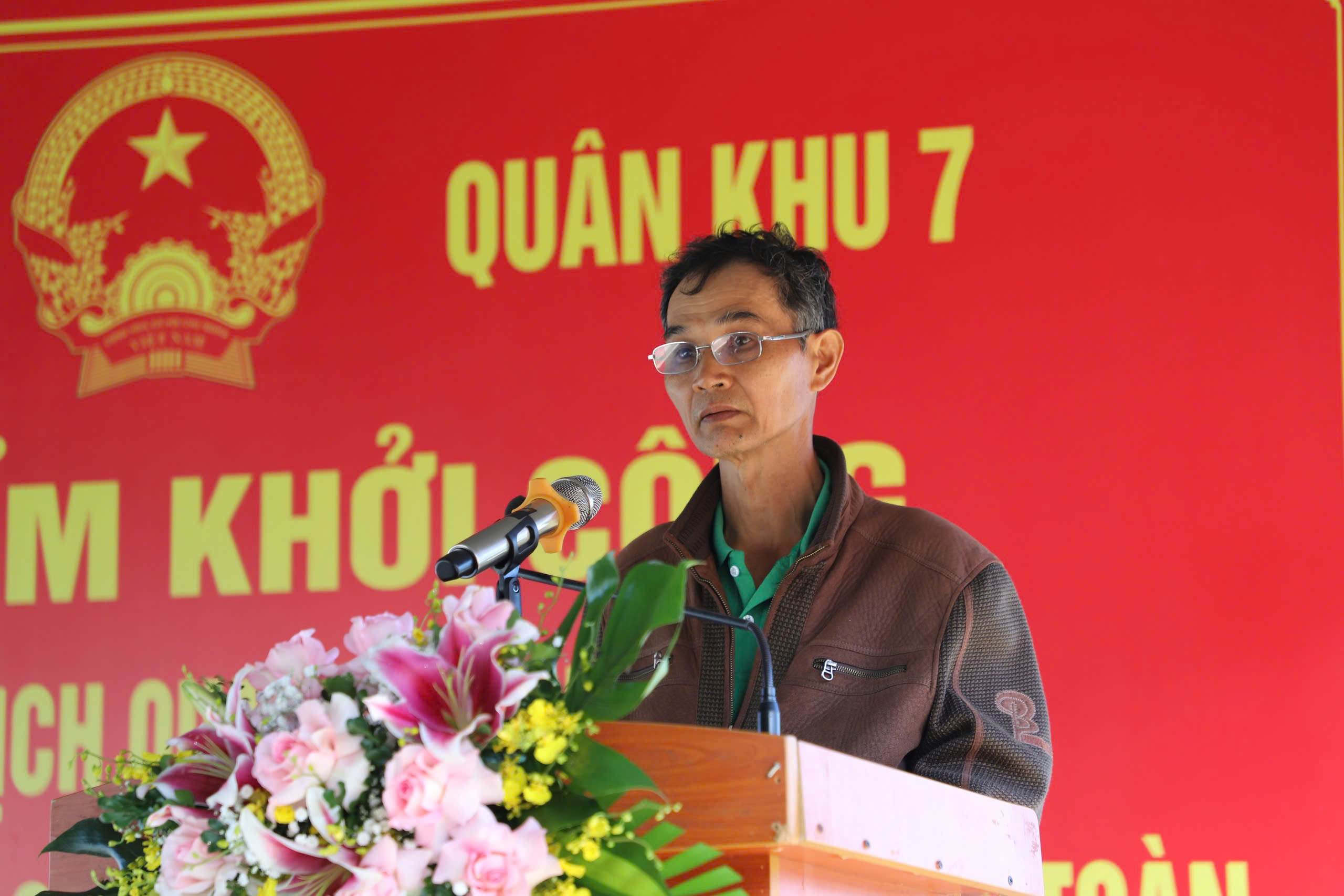 ông Nguyễn Quốc Huy, thôn Lâm Tuyền 1, xã D’ran phát biểu tại buổi lễ khởi công
