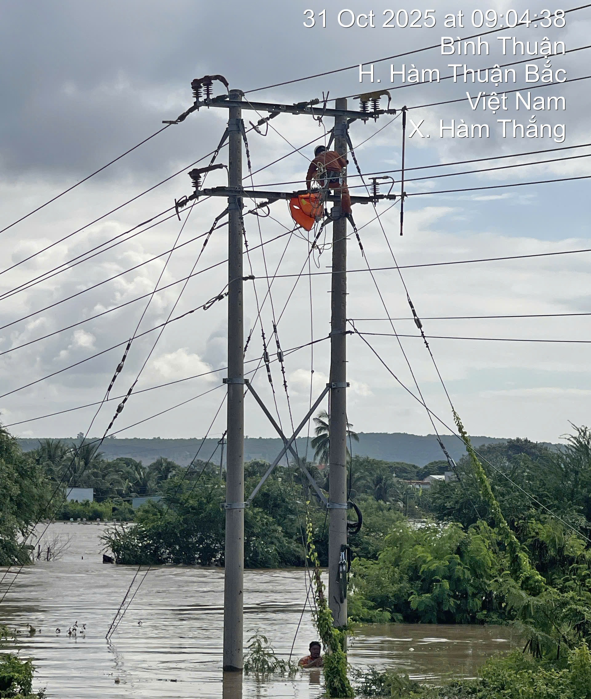 Theo đó, tại những địa bàn ngập sâu, vào các ngày từ 30/10 - 1/11, ngành Điện địa phương đã tiến hành cắt khẩn cấp 44 vị trí thuộc khu vực quản lý của các đội quản lý điện: Hàm Thuận Bắc (40 vị trí), La Gi (2 vị trí), Phan Thiết (1 vị trí), Hàm Thuận Nam (1 vị trí)…