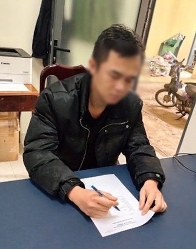 Đối tượng Trần Thanh Tú làm bản tự khai tại cơ quan Công an
